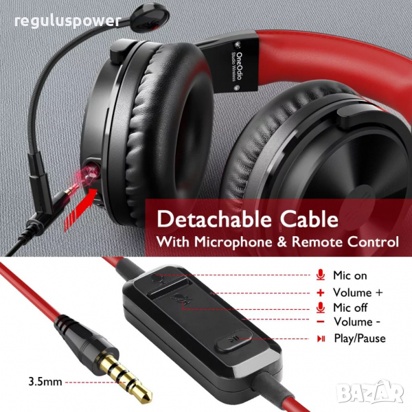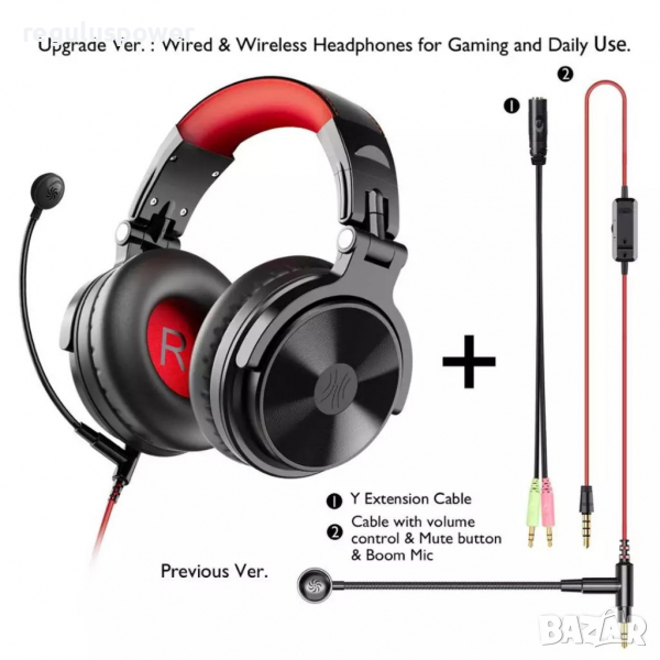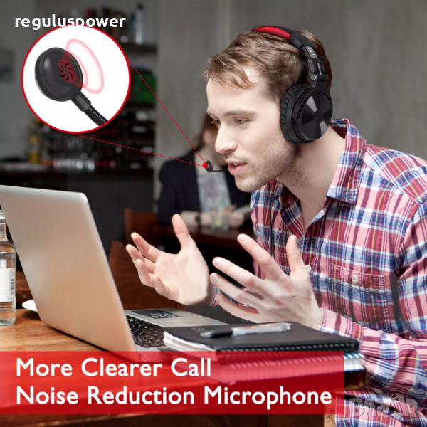 Mногофункционални безжични студийни слушалки OneOdio Studio Pro-M с два микрофона- един вграден корпуса и добавен удължен микрофон с интелигентно шумоподтискане за чисти разговори в кабелен режим. Подходящи за PC game, кол център и дистанционно обучение.