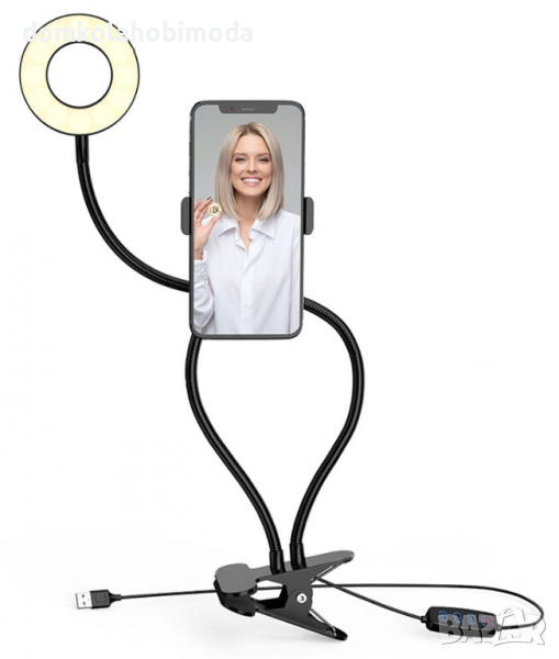 LED ринг лампа 10W със стойка за телефон 9см, 3 режима на цветна температура