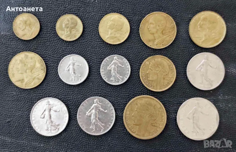Френски монети от и извън обръщение, без опаковка. Качество добро, като на снимките. Цената е за всички. (снимката е примерна)