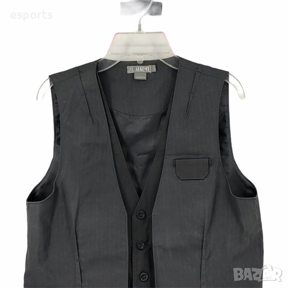 мъжка жилетка Alkemy в елегантен тъмносив цвят. Размер: L (Large). Жилетката е в отлично състояние, не е носена от човек, а само използвана за експозиция на манекен в магазин. Това я прави почти нова, без следи от носене или употреба, и е перфектен избор за тези, които търсят висококачествена и стилна част от гардероба си.