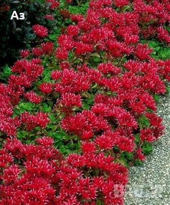 сукулентни листа. Веднъж насадени, остават за постоянно в градината. Издържат на жарко слънце и при минусови температури.Цветовете са с диаметър около 1,5 см. Цъфти обилно от юни до октомври в ярко цикламено и тъмно червено.