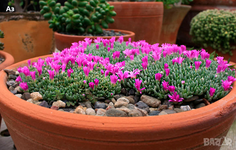 Делоспермата обича директните слънчеви лъчи. Подходящи цветя за алпинеума, бордюра или за висяща кашпа