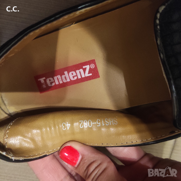 Елегантни обувки Tendenz. Естествена кожа. Подходящи за всеки ден или за повод. По етикет са 43 номер, стелка измерена от мен 27,5 см. Цена 18 лв. Нямат скъсано или разлепено. Имат малка забележка- на едната пета подметката е леко изтъркана. Видимо и на снимките. Но не е нещо фрапиращо!