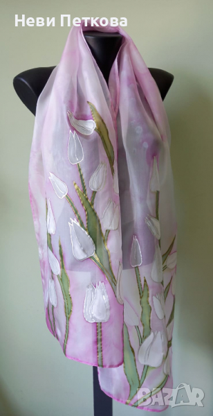 Изработен на фина естествена коприна с бои на Марабу