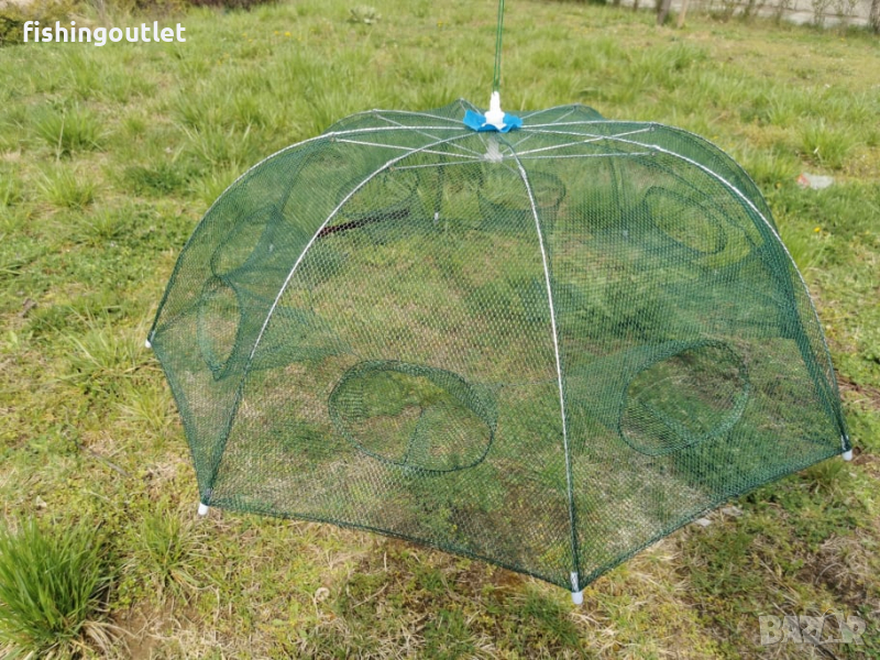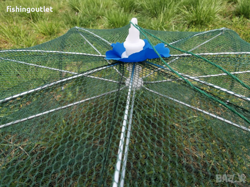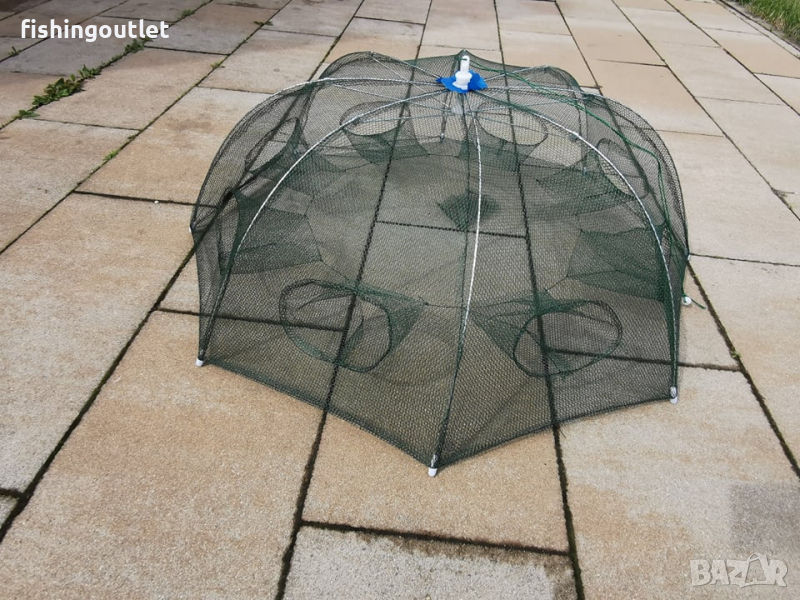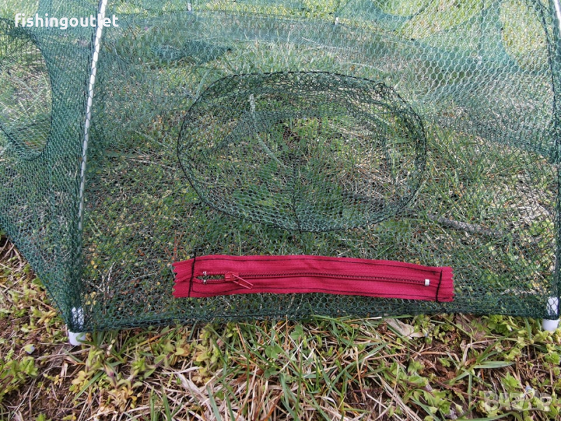 Съдържа осем джоба през които влизат примамените рибки или раци след което не могат да се върнат.