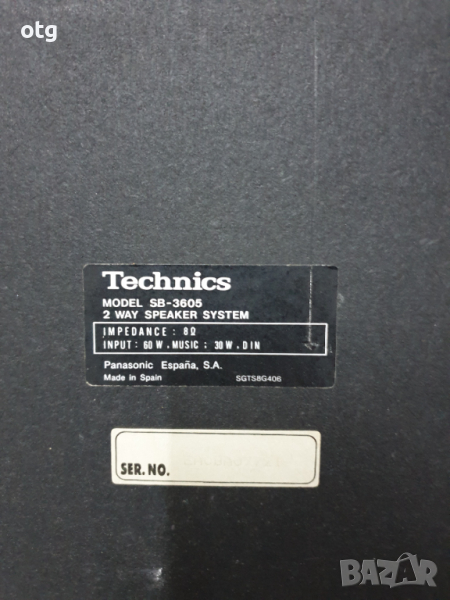 Колони Technics SB-3605 60W 8 ома music: 30W → Обява 36555916