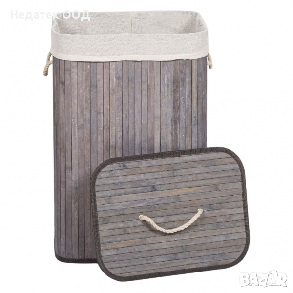 Кош за пране Бамбук, с капак, 40х30х60 см см, 72 литра, сив/син → Обява 36556453