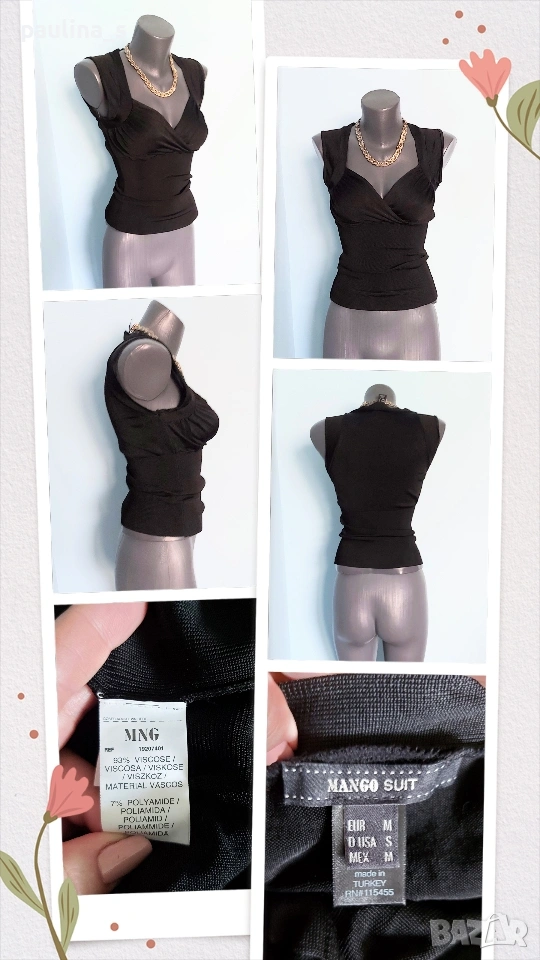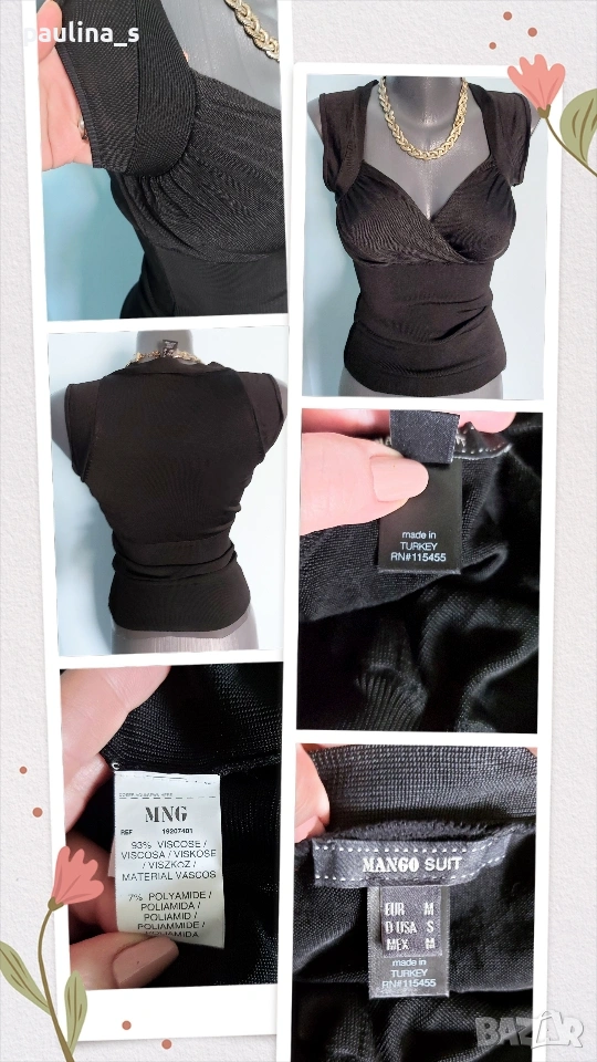 3️⃣ M / 2XL - "Mango suit" MNG by Mango. Цената е крайна, без пазарлъци 20 евро. Много стилно еластично бюстие от два вида трико, за торса под бюста е по-плътно и стегнато, горе е по-ефирно, не прозира. Материята е доста еластична и много приятна за допир от M до 2XL, една бройка. Не е носено, като ново.
