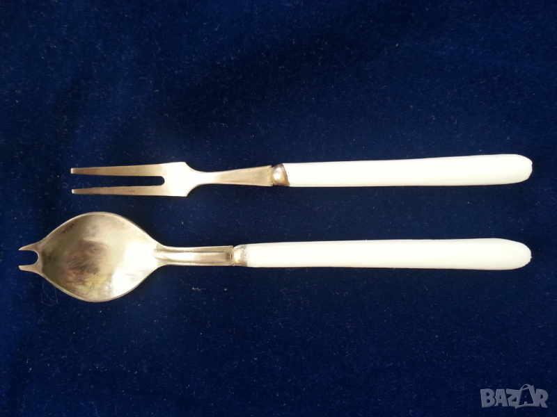 Предлагам комплект лъжички/вилички, общо 12 броя, производство СССР преди ок.50 години - коктейлни или за десерт, с бели пластм.дръжки: