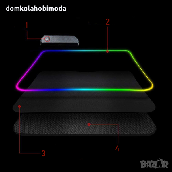 Подложка за мишка RGB LED, 7 цвята, 4 програми.35х255х0.3 cm, Кабел около175 см