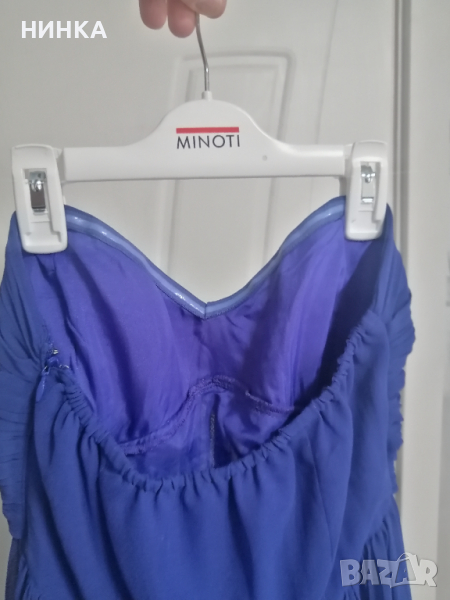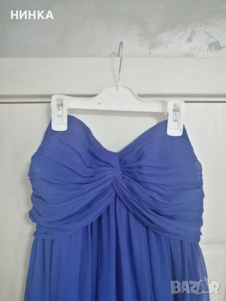 Роклята е много хубава! Цветът е турско син, размер по етикет S, но би станала и на М. Никакви забележки и следи от обличане няма. Пада тежко надолу е стои прекрасно.