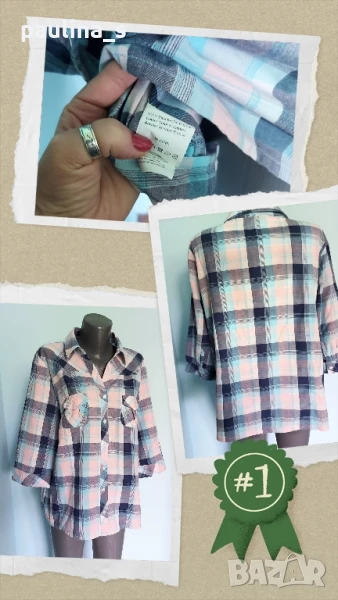 3️⃣. Колаж / XL / 3XL - Памучна дамска риза в каре. Цената е крайна 29,99лв / 15 евро. Цветово е подходяща за дънки и не само. В много сладурски принт, в много приятна за носене, хипоалергична материя. Без дефекти и етикет, като нова.