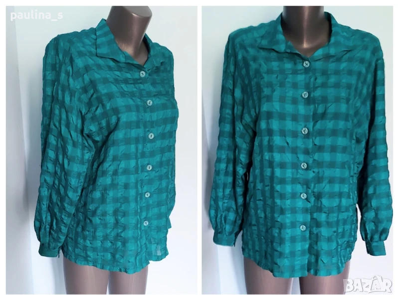 2️⃣. Колаж / L / XL - Зелена копринена риза, ръчна изработка. Цената е крайна 29,99лв / 15 евро. Копринена ръчно изработена риза за повод или офис. Материята е релефна пясъчна коприна и вискоза, с прозрачност в едно от картата, без еластичност. Копчетата са дизайнерски, само те струват около 20лв. Безупречна изработка по модел на Burda.