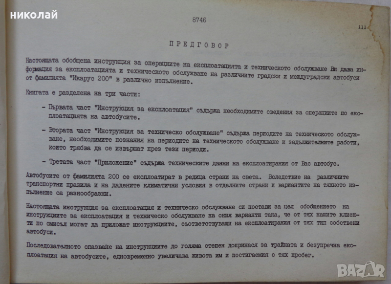 Инструкция за експлуатация на Български език за Икарус 280 съдържа 200 страници.