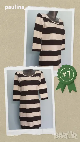 2️⃣. Колаж / XL / 3XL - Памучна брандова рокля "DEVIDED" by H&M. Цената е крайна 29,99лв / 15 евро. Чисто нова е, без дефекти и етикет. Нова, без дефекти и етикет, маркова рокля модел "Малка черна рокля" на широки черно бели райета. Материята е памук и ликра, хипоалергична и доста еластична и покрива няколко размера, изброени са.