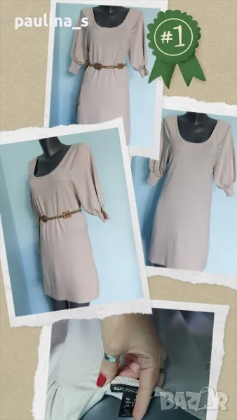 1️⃣. Колаж / M / 2XL - "Mango". Цената е крайна 29,99лв / 15 евро. Много стилна еластична рокля тип туника с буфон ръкави и леко разкрояване в долната част. Ръкавите са част от деколтето и имат две симетрични плохи за ситиране на раменте, вместо раменна извивка. Материята е памук и вискоза, доста еластична и хипоалергична, покрива няколко размера. Може да се носи и като туника, без колана, по желание на притежателката. Не е нова, но е без дефекти. Коланът се продава отделно - ръчна изработка от черупка костенурка - цена 9,99лв / 5 евро, предпочитам да не се делят.