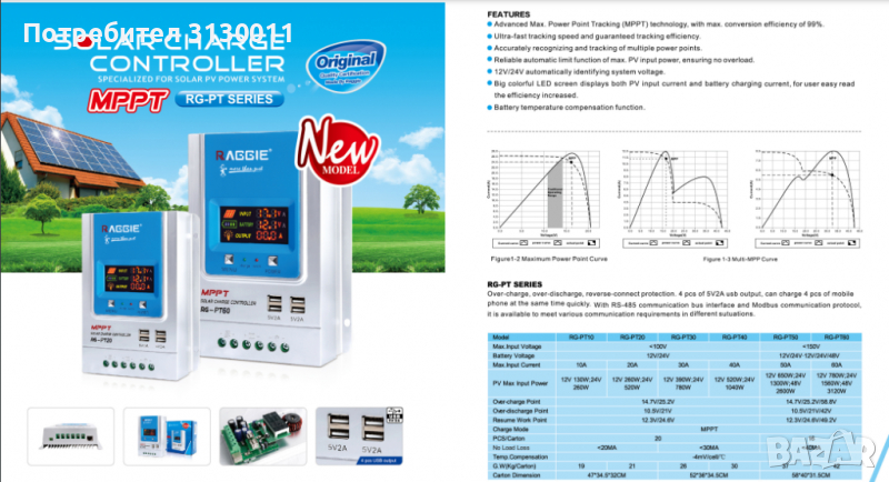 █▬█ Промо -100лв Raggie НОВИ Контролери 20/30/60А Автомати MPPT 12V, 24V Kонтролер за соларни панели