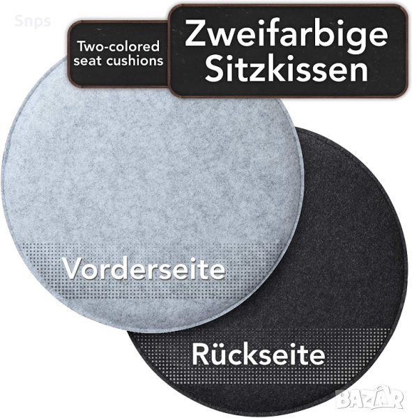 възглавници за столове.Напълно стабилна - благодарение на специално зашития външен шев на тази подплата на седалката, тази кръгла възглавница винаги е във форма. Освен това многото измивания не могат да му навредят.Много приложения - използвайте тези практични възглавници за седалки отвътре или отвън. Тези външни възглавници също са чудесно допълнение към вашата тераса и всяка чакалня.Бързо обръщане: модерната възглавница за стол от филц също се вписва идеално във всяка трапезария. С практичната обръщаща се възглавница в светло сиво и тъмно сиво, вашите столове ще изглеждат нови отново и отново.Може да се пере и лесно да се грижи: ако тези възглавници за столове се замърсят, можете просто да изперете възглавницата на 30° в пералната машина. Лесно е да се грижиш