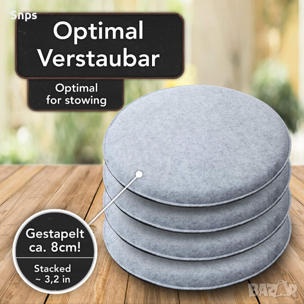 Удобни кръгли филцови възглавници за стол/пейка, диаметър 36 см, миещи