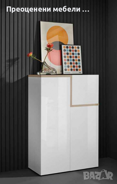 • Цвят бяло с висок гланц и контрастно дървесно.