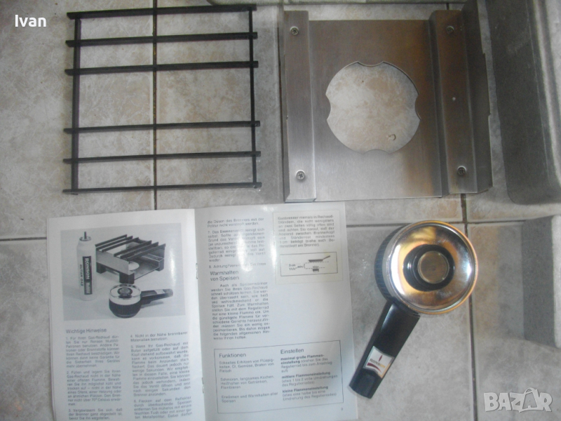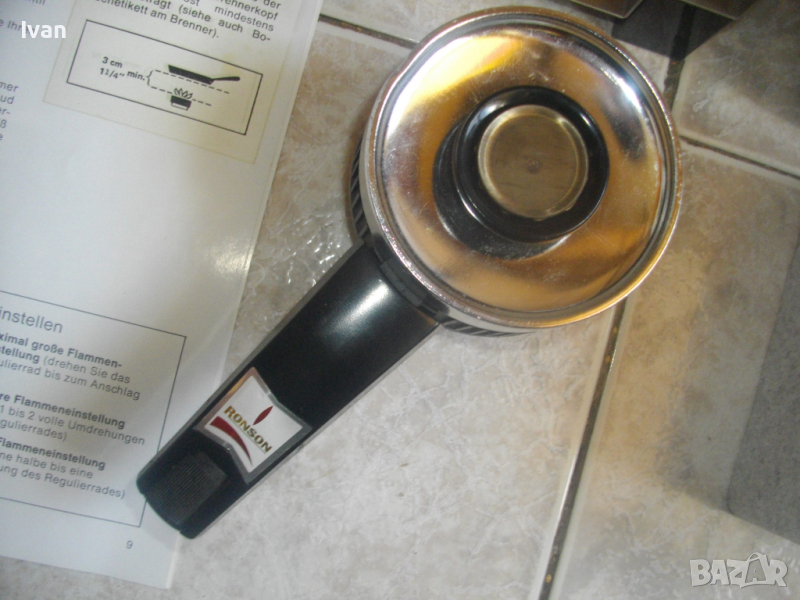 Дръжка на котлона - от бакелит, трудно запалим. Дължина дръжката - 90 мм. Отзад на края си е с регулатор от твърда пластмаса на силата на пламъка /усилване/намаляване/.