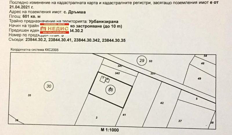 Агенция за недвижими имоти НЕДИС продава парцел в махала след село Дръмша, в дясно от пътя по посока с. Чибаовци. Отклонение от асфалтов път - около 500 м черен, здрав път. В съседство (100-150 м) има къщи.
