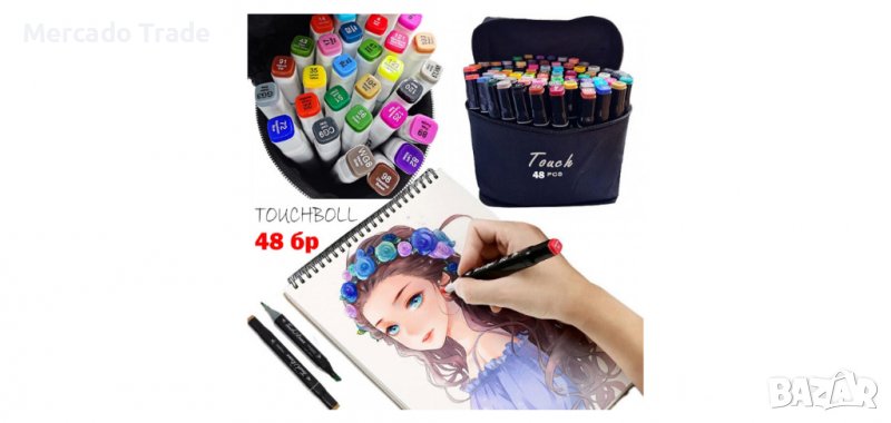 ТOUCHBOLL комплект двойни цветни маркери с тънък и широк писец Това са цветни маркери, предназначени за писане или рисуване. Двустранни, с тънък и широк писец за скици за скициране, рисуване, маркиране, оцветяване за възрастни, POP реклама, калиграфия и за илюстрации.