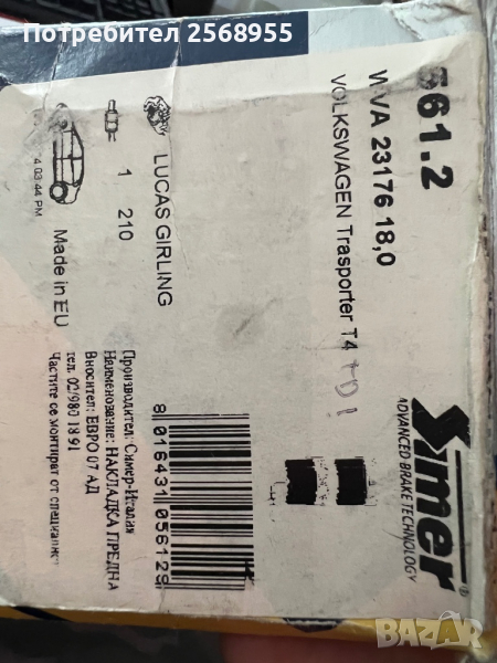 SIMER 561.2 Накладки предни VW Transporter T4 / 1990-2003 / OE 7D0698151H / OE 7D0698151C