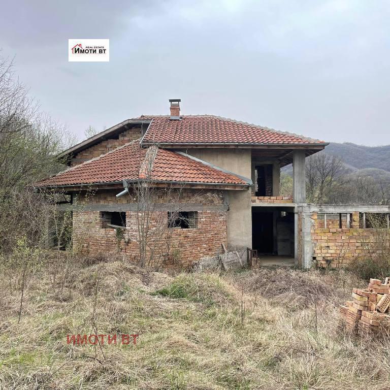 Двуетажна къща завършена на груб строеж. Имота е строен като къща за гости, на първото ниво има просторна дневна с трапезария и кухня, зала за тихи игри тоалетна, мокро помещение, две спални, веранда. На второто ниво има четири големи спални всяка с баня и тоалетна и тераса. Имота се нуждае от довършване, но с оглед местоположението, панорамата която се открива от имота, това е къща с огромен потенциял, както да се превърне във Вашия нов дом, така и да се ползва като къща за гости. Имота има партиди за ток и вода. Двора е голям и равен.