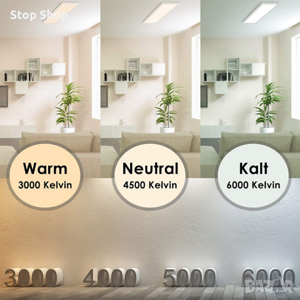 [ ИЗПЪЛНЕНИЕ ] 50W LED панел съответства на 400W флуоресцентна лампа. Изборът на правилния [ СВЕТЛИН ЦВЯТ ] усъвършенства [ ОБЛАСТ НА ПРИЛОЖЕНИЕ ], те са подходящи за лична и търговска употреба. Панелите са универсални. Благодарение на високия [ ЪГЪЛ НА ЛЪЧАТА ] от 120° е гарантирана хомогенна светлинна мощност, която може да се увеличи чрез използване на няколко панела в големи помещения.