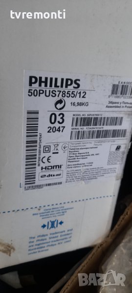 T-con board for 50inch CCPD-TC495-008 V4.0 for Philips 50PUS7855/12 Борда е гарантирано работещ Демонтиран от телевизор Philips модел 50PUS7855/12 със счупен дисплей TPT500-PV5D.Q Rev.S01G тествана от нашия техник