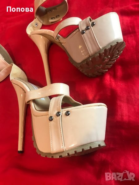 Супер екстравагантни, 18 см ток. Много е трудно да се ходи с тях. Фетиш, лак, кожа