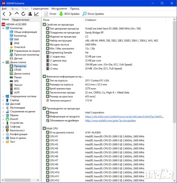 2. Процесор - Intel Е5-2689- 8 ядра/ 16 нишки на 2,6 GHZ, 3,6 GHz turbo, 8 GT/s QPI (4000 MHz), 5 GT/s DMI,
