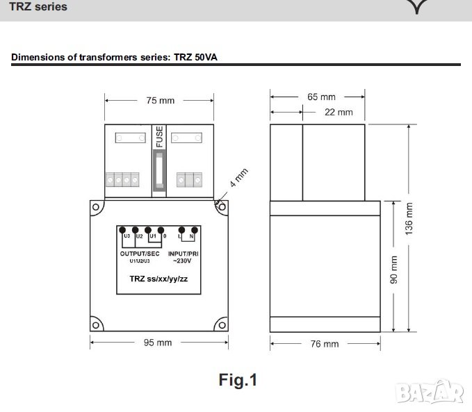 Трансформатор ТРЗ 50 16/18/20 50 VA TRANSFORMER TRZ 50/16/18/20 → Обява 36588616