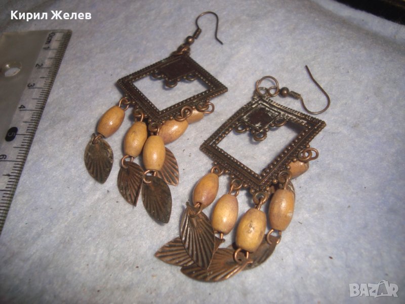 КРАСИВИ МЕСИНГОВИ ВИНТИДЖ ОБЕЦИ БЕЛ ЕПОК СТИЛ с ВИСУЛКИ от СТРУГОВАНО ДЪРВО 4253