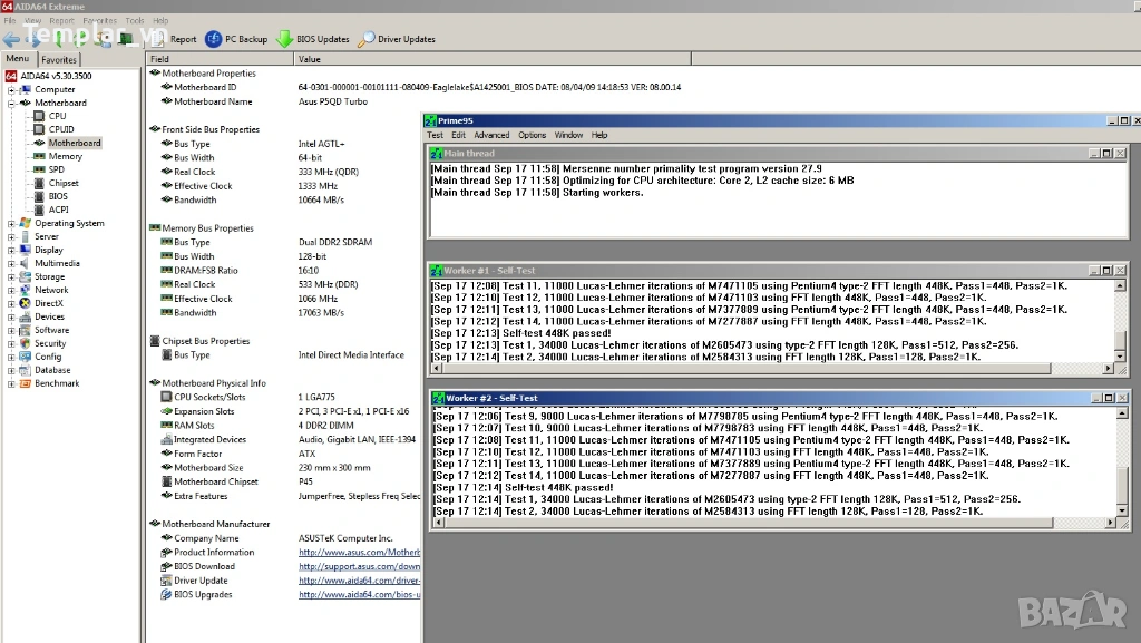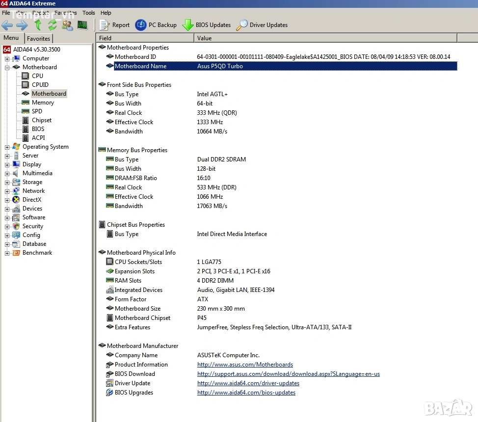 1) Дънна платка Asus P5QD TURBO // С най-добрия P45 chipset за сокет 775. 4 DDR2 DIMMs, 6xSATA, 4x USB, 1 x IDE 45 nm CPU support