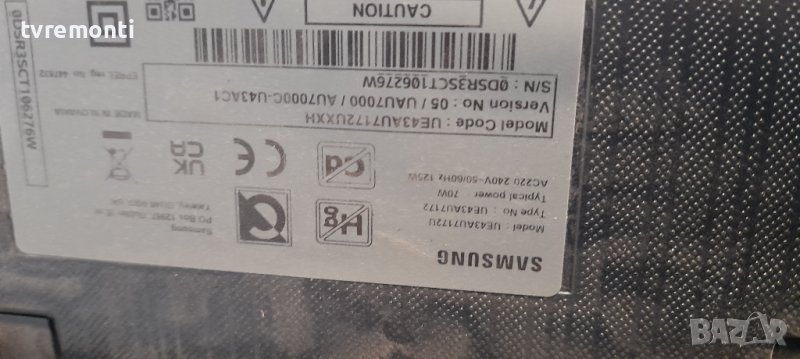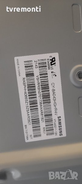 POWER SUPPLY BA43FA130 KANT_SU2E_43_HYBRID_PW FOR SAMSUNG UE43AU7172борда е гарантирано работещ Демонтиран от телевизор SAMSUNG модел UE43AU7172 със счупен дисплей CY-BA043HGHR4V
