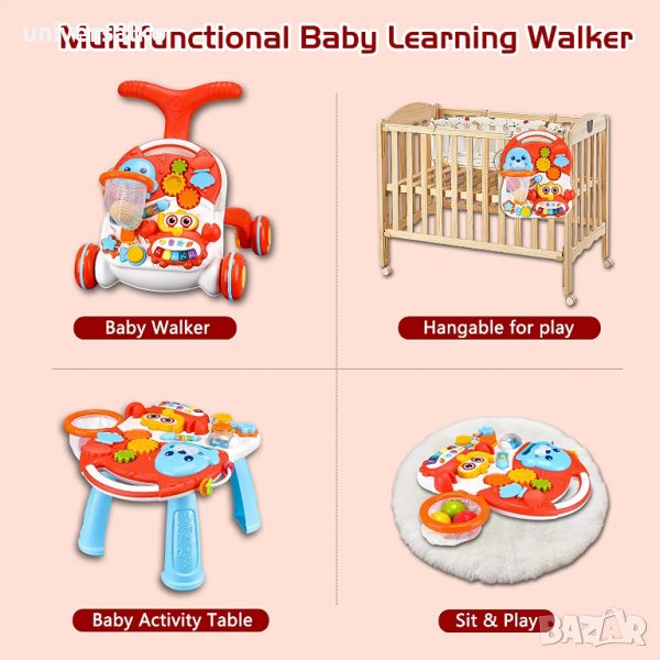 Проходилката може да се преобразува в занимателна масичка с множество дейности.