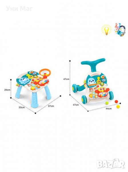 Уокър и масичка 2в1 проходилка, интерактивна играчка, музикална играчка