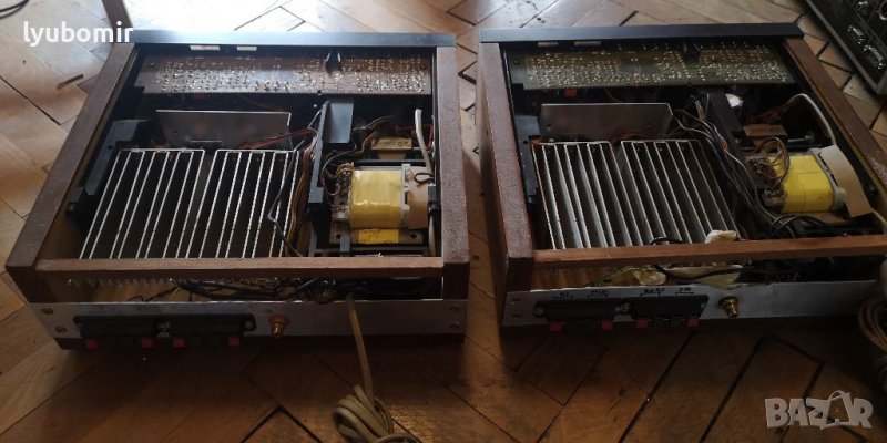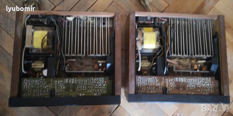Два моноблока, затворени в кутии. Отделни усилватели с изходи на щипки за ниски, средни и високи. Има фетбек линия за датчик на басови говорител. Свалени са и работят чудесно от активните колони на Филипс с изодинамични те пищялки. На панела имат потонциометър и индикатор за силата на общия звук, както и копче филтър. Прецизен звук!