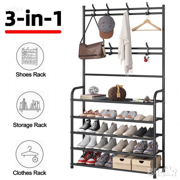 МУЛТИФУНКЦИОНАЛНА ЕТАЖЕРКА СЪС ЗАКАЧАЛКИ И РАФТОВЕ ЗА ОБУВКИ → Обява 36602863