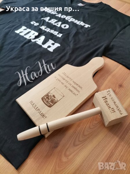 Подаръчен комплект за имен ден с име по поръчка * тениска * гравирана дъска * чук → Обява 36604643