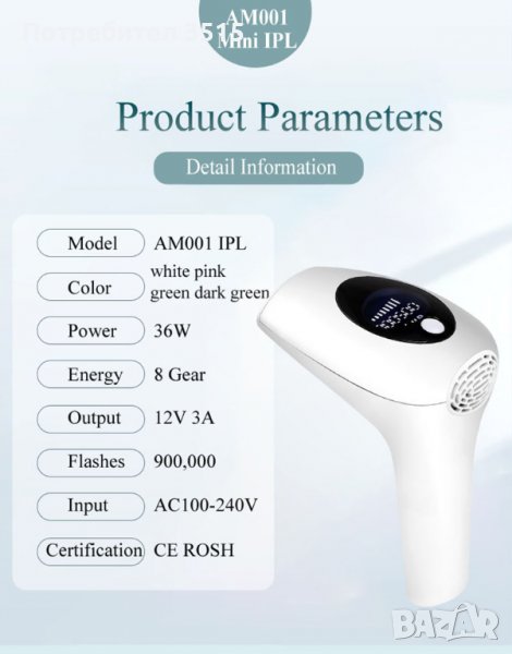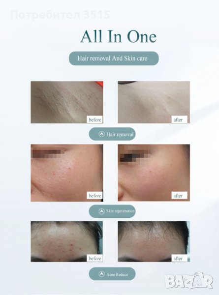 • Епилатор за отстраняване на косми - за трайно, безболезнено и дълготрайно премахване на космите с помощта на IPL технология
