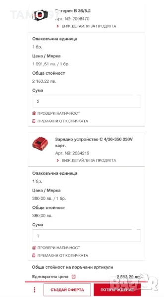 Магазинската цена само на 2 батерии и зарядно е: 2 563лв БЕЗ ДДС (С ДДС 3 075лв)
