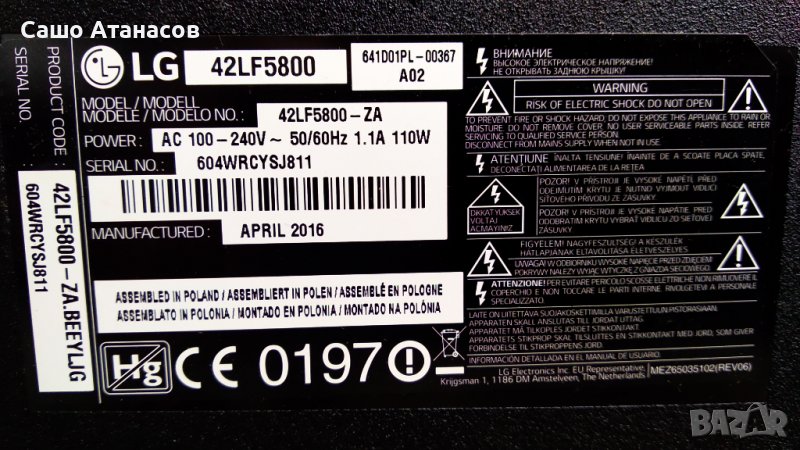 Захранване: EAX65423701 (2.1) / LGP3942-14PL1 - 60лв.