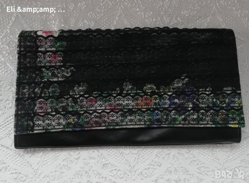 Черна дамска чанта клъч. Чанта плик с дантела → Обява 36607786