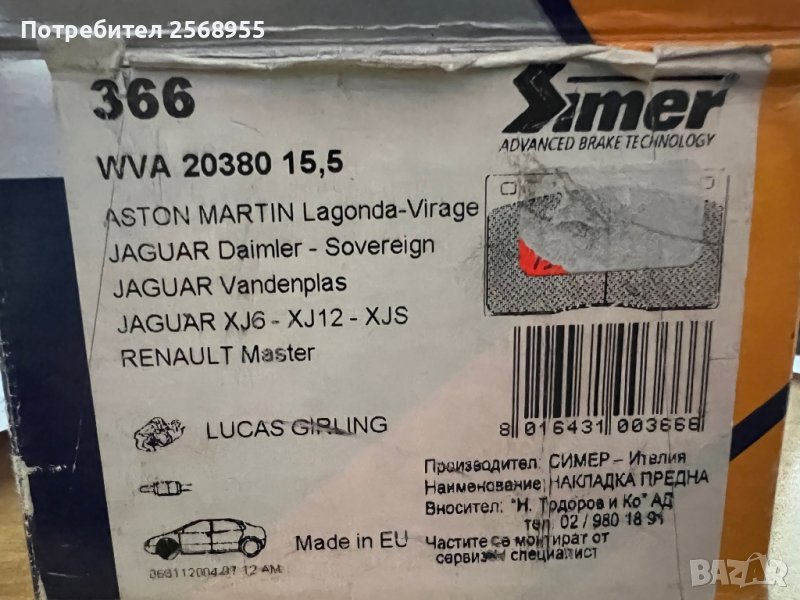 SIMER 366 Накладки предни JAGUAR XJ, DAIMLER 1961-1996 OE JLM1510 OE GBP224 OE C 41307 OE JLM9517