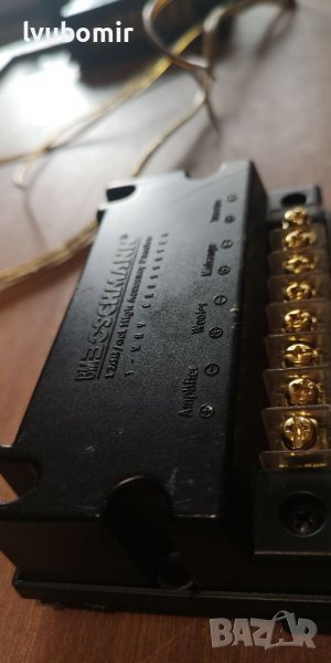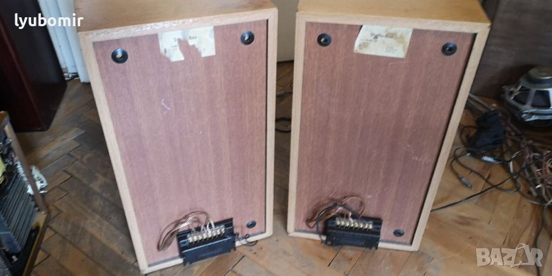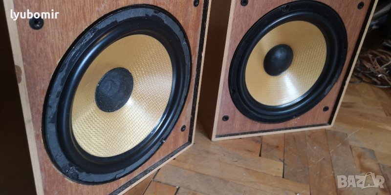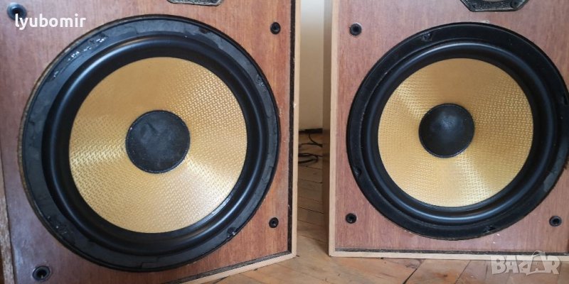Трилентови тонколони с изодинамични високочестотни говорители HIVI, Филипс е средно честотния и 10 инча кевлерови бас с ултра лека мембрана Monarh Горната част е пасивна бас камера. Филтъра Boshman е изнесен, за да не заема място. Финиша е фурнир. Перфектен звук.