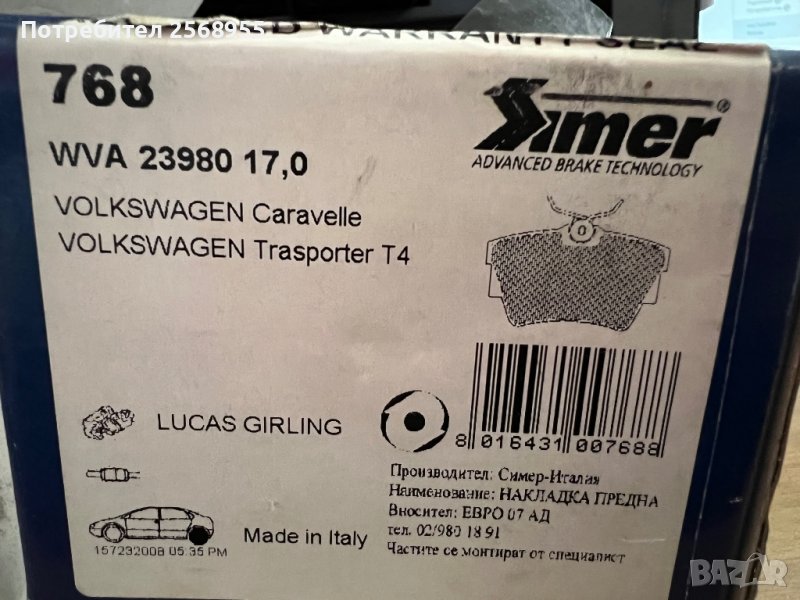 SIMBER 768 Накладки задни FIAT NISSAN OPEL RENAULT 2001-2024 OE 7701054772 OE 93192389 OE44060-00QAF, снимка 1 - Части - 36610414 SIMBER 768 Накладки задни FIAT NISSAN OPEL RENAULT 2001-2024 OE 7701054772 OE 93192389 OE44060-00QAF, снимка 2 - Части - 36610414 SIMBER 768 Накладки задни FIAT NISSAN OPEL RENAULT 2001-2024 OE 7701054772 OE 93192389 OE44060-00QAF, снимка 3 - Части - 36610414 1/3
