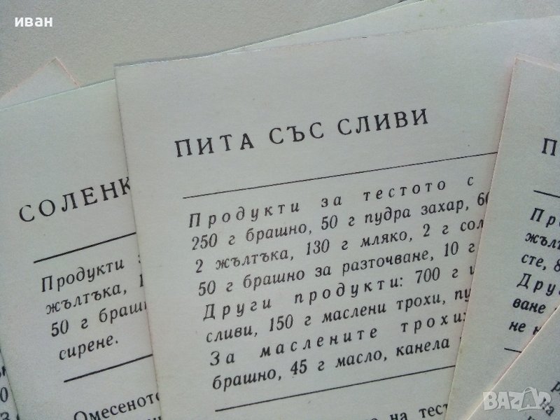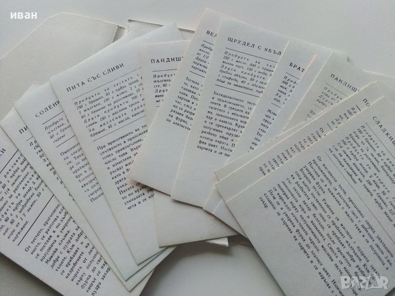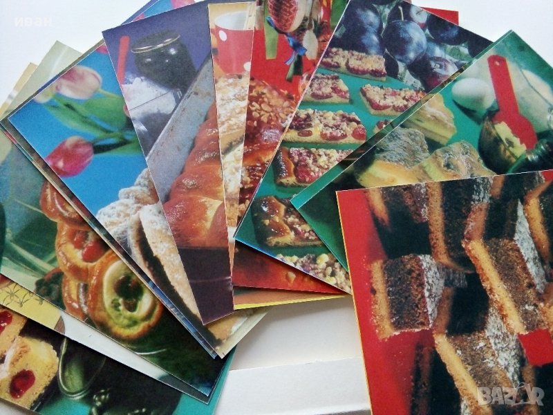 Тестени сладкиши - 18 броя цветни картички с рецепти - 1984 г. → Обява 36618589